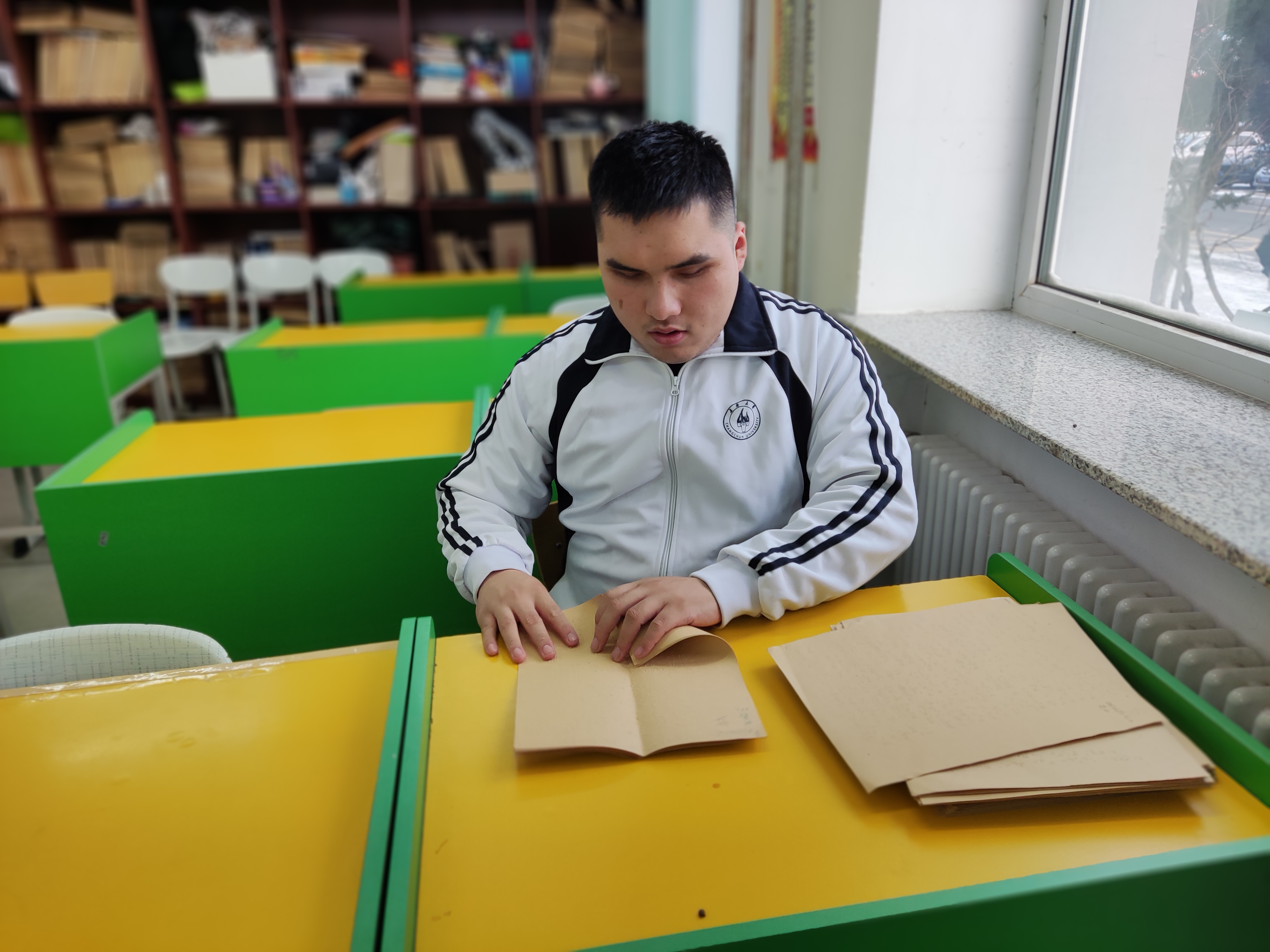 近日,我校特殊教育學(xué)院針灸推拿學(xué)專業(yè)22502班視障學(xué)生田玉凡利用廢舊盲文紙創(chuàng)作出的紙?zhí)账囆g(shù)作品《盤(pán)龍瓶》,被人民教育出版社出版的《盲校義務(wù)教育實(shí)驗(yàn)教科書(shū)英語(yǔ)九年級(jí)全一冊(cè)》采用。